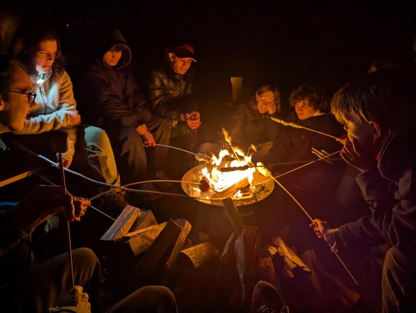 Zum Ausklang gibt es eine gemütliche Feuerstelle zum Kochen und Beisammensein bei Popcorn und Marshmallows.
